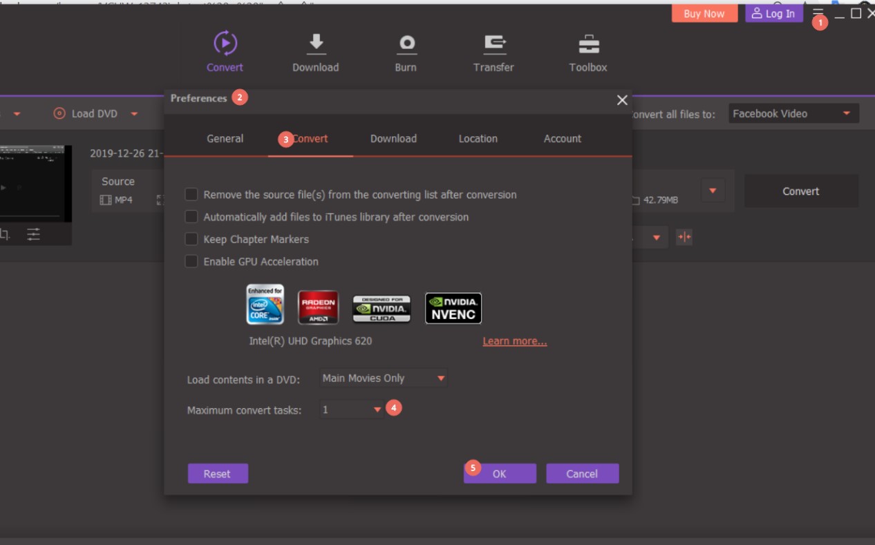Click the pulldown menuPreference, then switch to Convert. Find the Maximum convert tasks option and set it as number 1. Then product will then convert the files one by one after you clicked Converter All button.